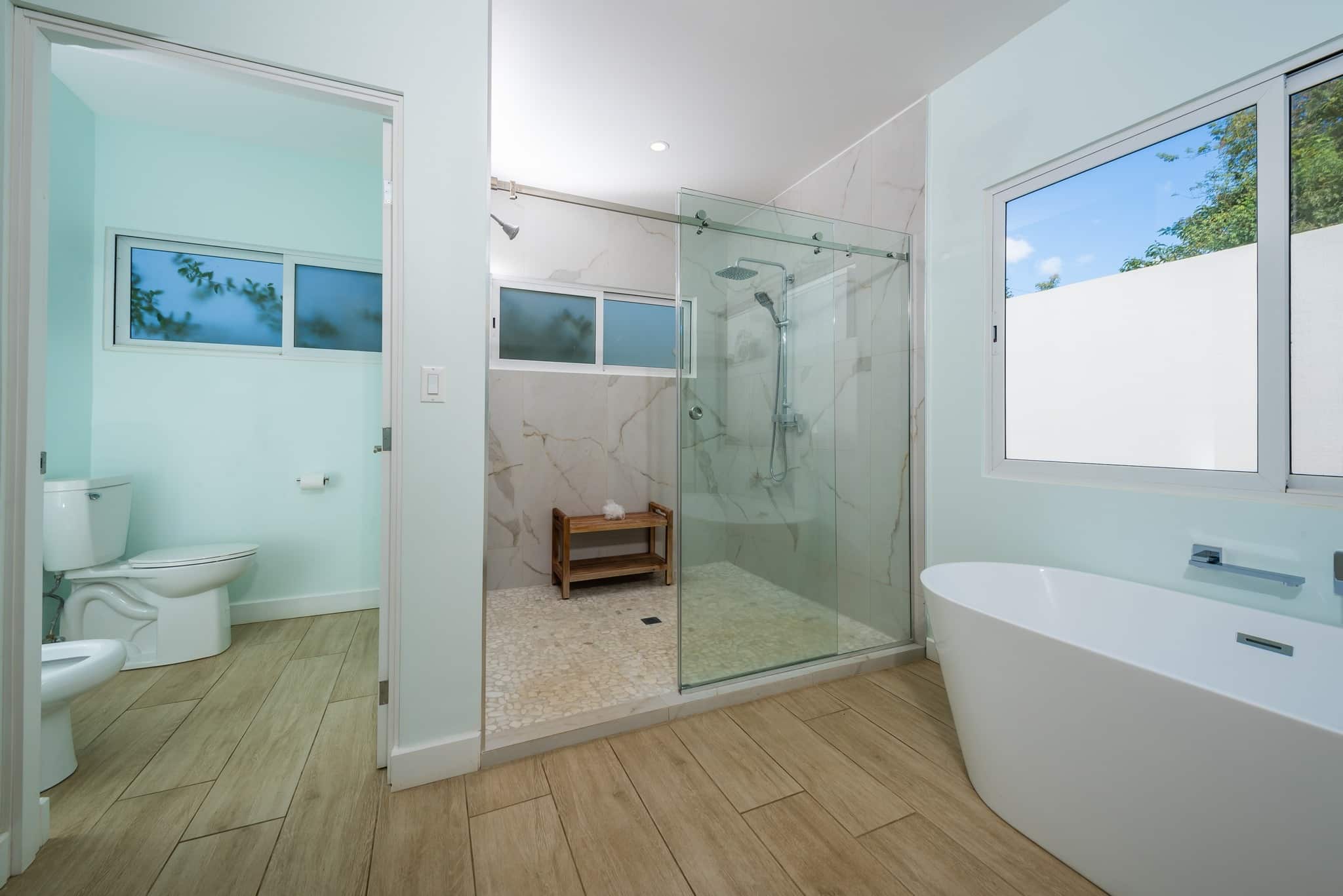 Two additional bedrooms are located in a separate wing on the opposite side of the house along with their own luxury bathroom. Guests can stay in the jungle bedroom which has its own separate entry and comes outfitted with an amazing outdoor shower cave to cool down after a day of surfing or exploring.