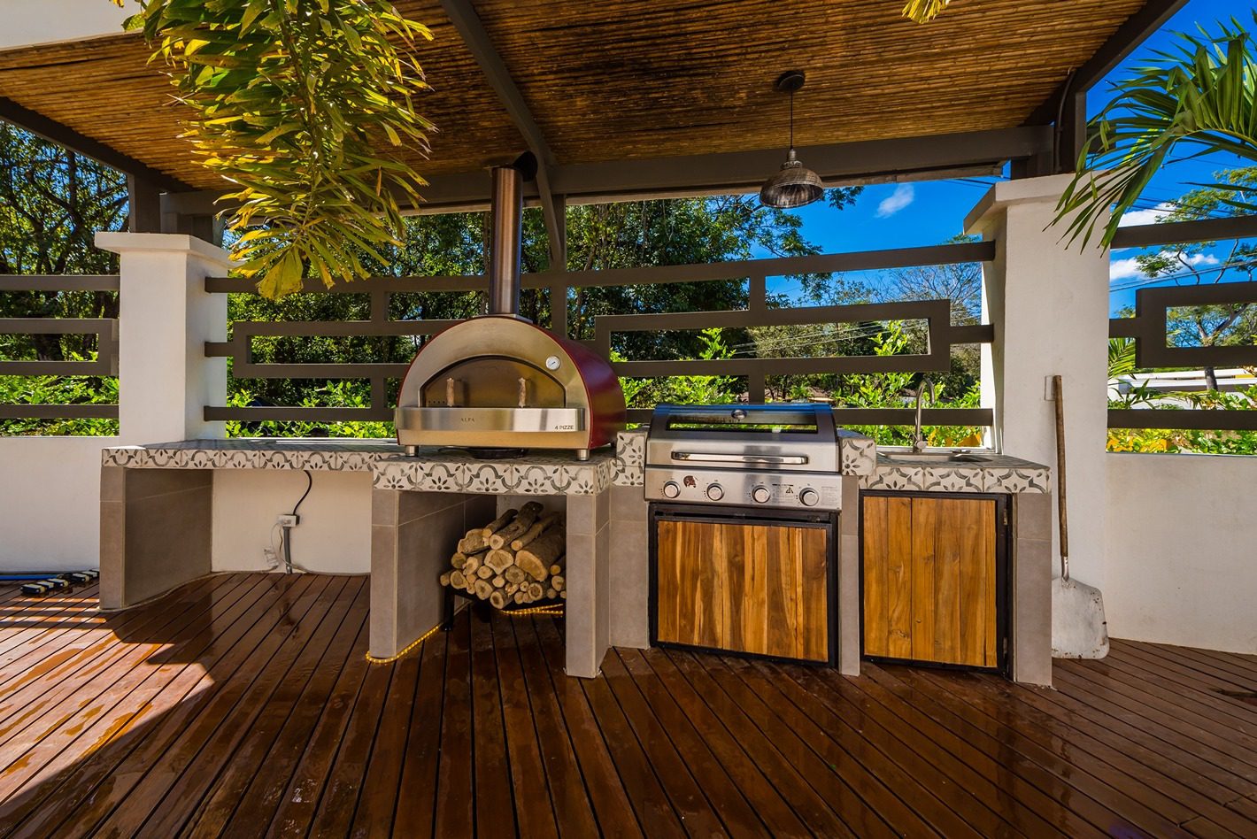 Having company? Entertain with style anytime from your covered outdoor kitchen area, complete with imported commercial Italian pizza oven, oversize commercial BBQ and stainless steel sink in the custom wet bar area.