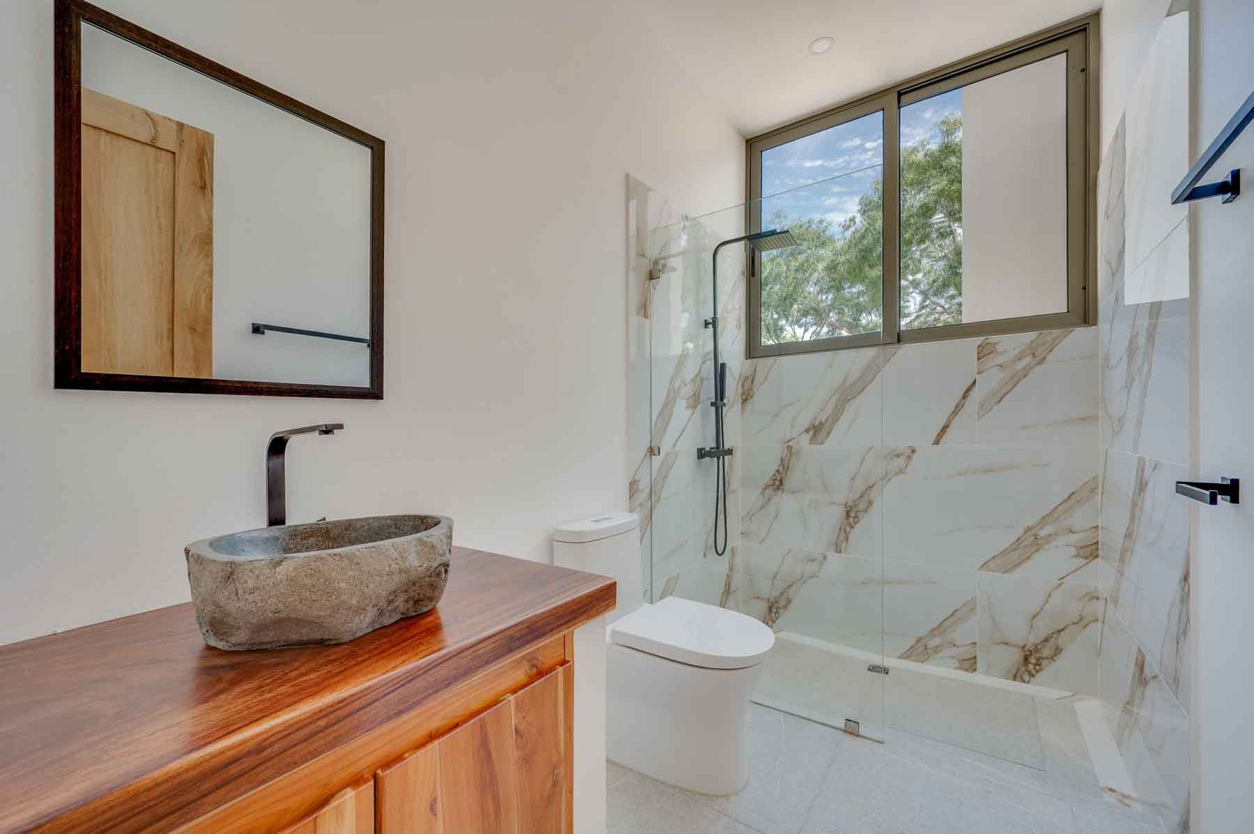 The luxurious, fully equipped modern kitchen opens seamlessly onto the living areas, creating an effortless flow for everyday living and entertaining. Noble woods such as melina, teak, and guanacaste add warmth, character, and sophistication throughout the home. Built to high-quality standards with carefully selected materials, the villa offers robust and durable construction with particular attention to structural strength, insulation, and long-term performance, ensuring security and peace of mind even in a tropical environment.